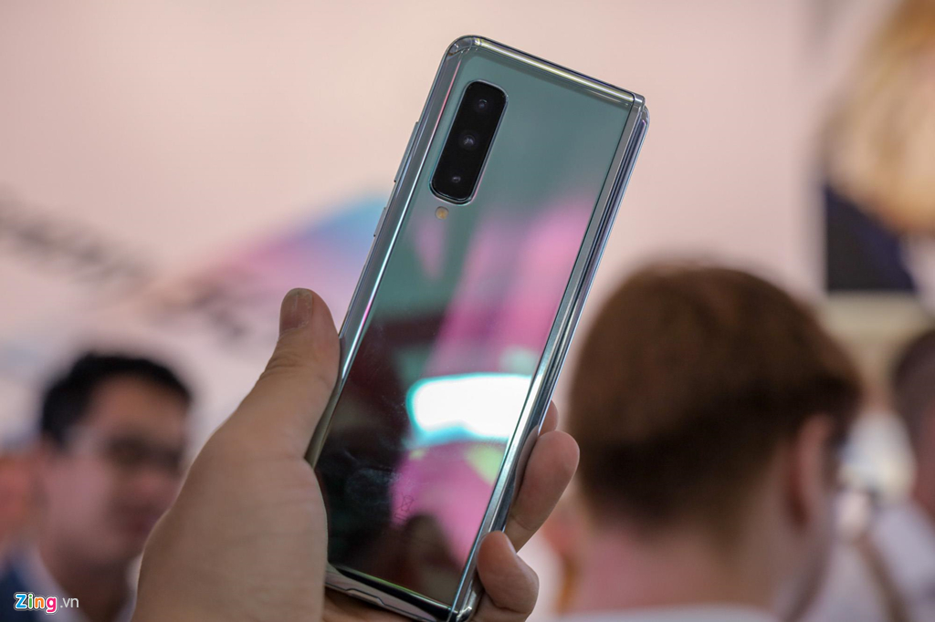Cầm trên tay khi đang gập lại, Galaxy Fold cho cảm giác như một chiếc điện thoại dạng thanh trước kia, với kiểu dáng rất dài và thân máy khá dày. Máy trở nên gọn gàng, dễ cầm hơn phần lớn smartphone hiện nay khi gập lại.